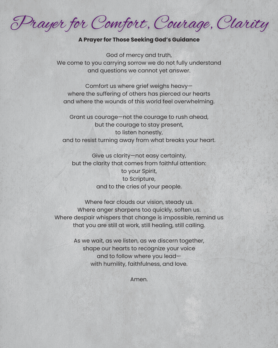 A prayer for those seeking God's guidance for comfort, courage, and clarity